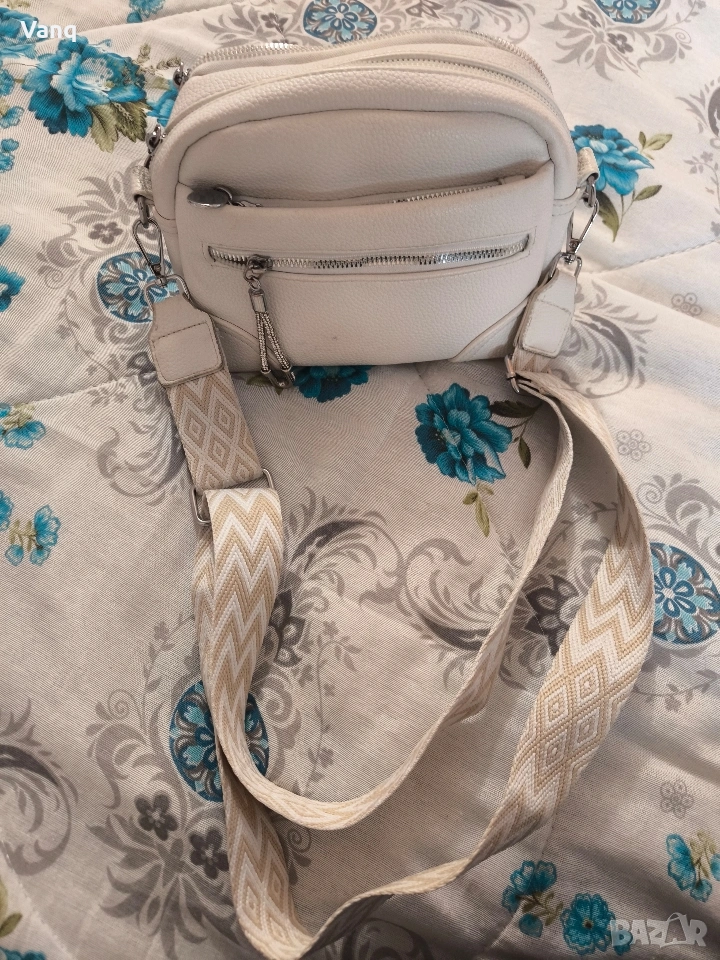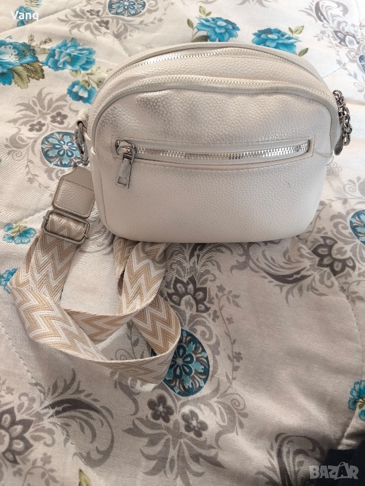 дамска чанта през рамо бяла .Дефекта е при закупуването не съм го видяла .Много отделения и прегради.