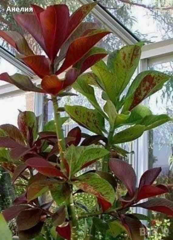 🌿Много атрактивно при него са листата, който се обагрят в бордо и розово шарки.