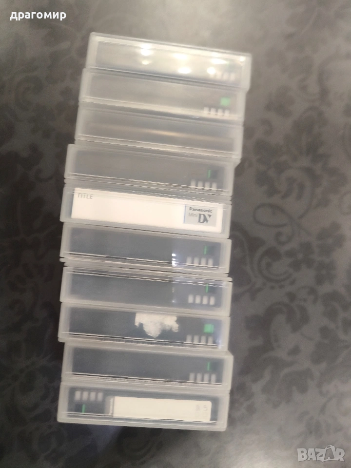 продавам касети Panasonic DVM63 Mini DV, много запазени, един брой 3 евро, общо десетте за 25 евро, имам още много други фотоапарати, камери, обективи, чанти, светкавици, батерии, зарядни устройства, касети, филтри, ремъци, ленти, при закупуване на повече неща отстъпка
