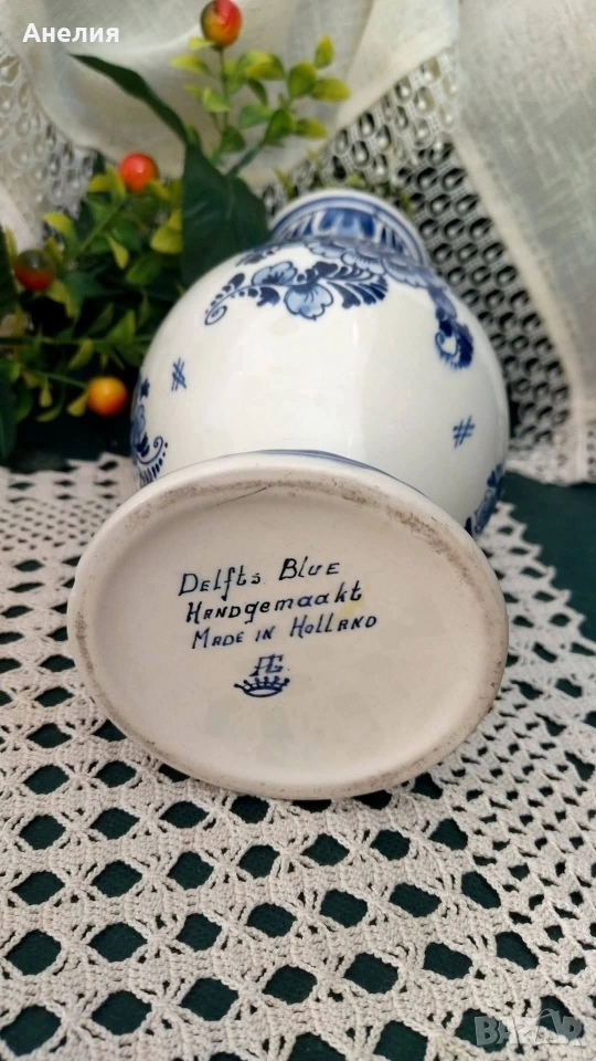 Ръчно ръчно изработена ваза от Делфтска керамика.