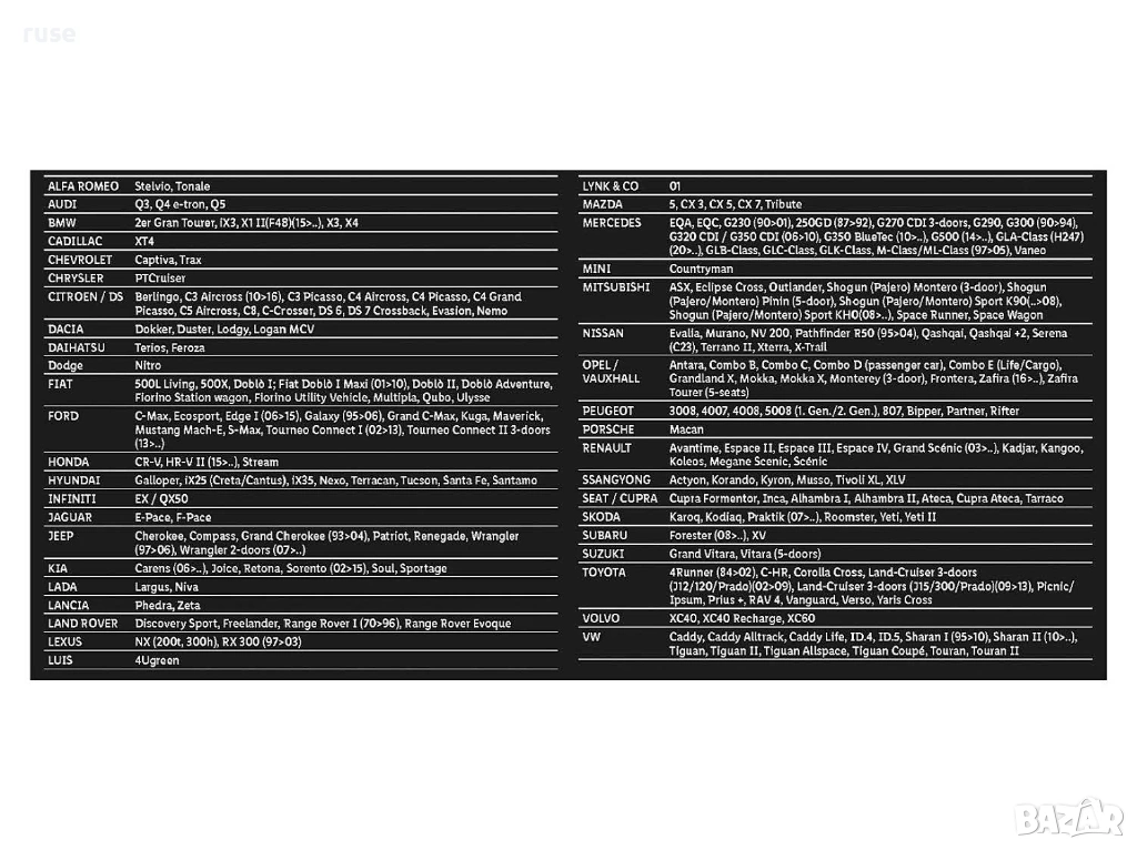 *Ако Вашият автомобил не е споменат, моля сравнете посочените размери с тези на Вашия автомобил!