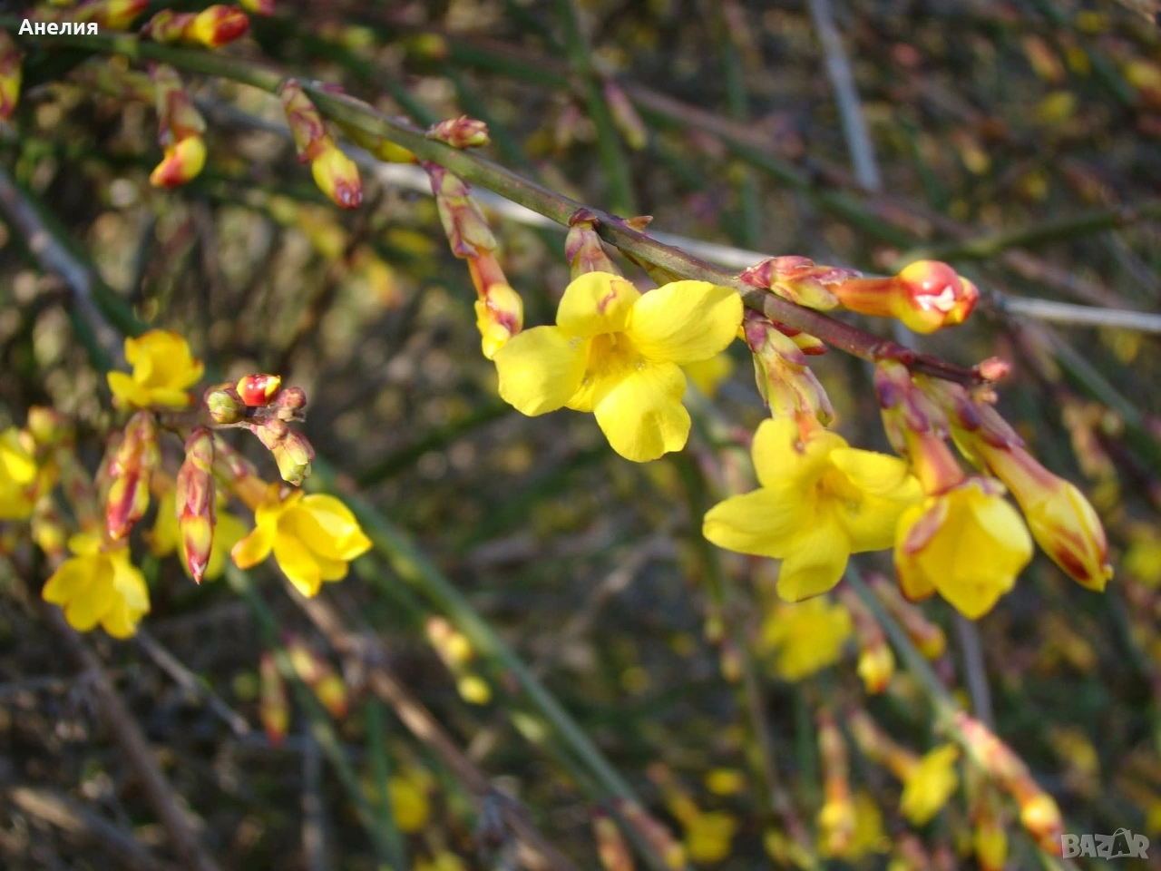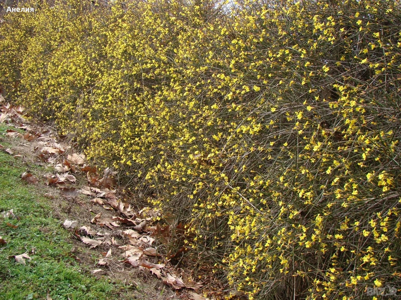 Много подходящ за огради,мрежи или самостоятелно в градината.Цъфти през м.февруари,март Зимоустойчив,вечно зелен.Достига 2,3 м височина Подрязва се според желанията.Може да се оформи и на топка.Гол корен добре развит.Сади се сега,лесно се прихваща.Аромат няма или е много слаб.Красив е зимата в цъфнеж ,тогава когато нищо не цъфти.Пишете ми.Изпращам с желан от Вас куриер.