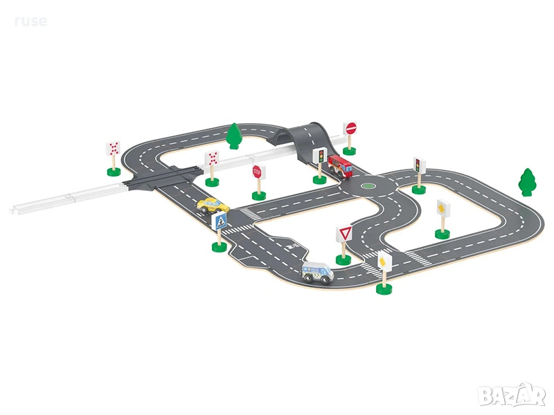НОВИ! Дървена писта 4м с 3 дървени коли Градски улици