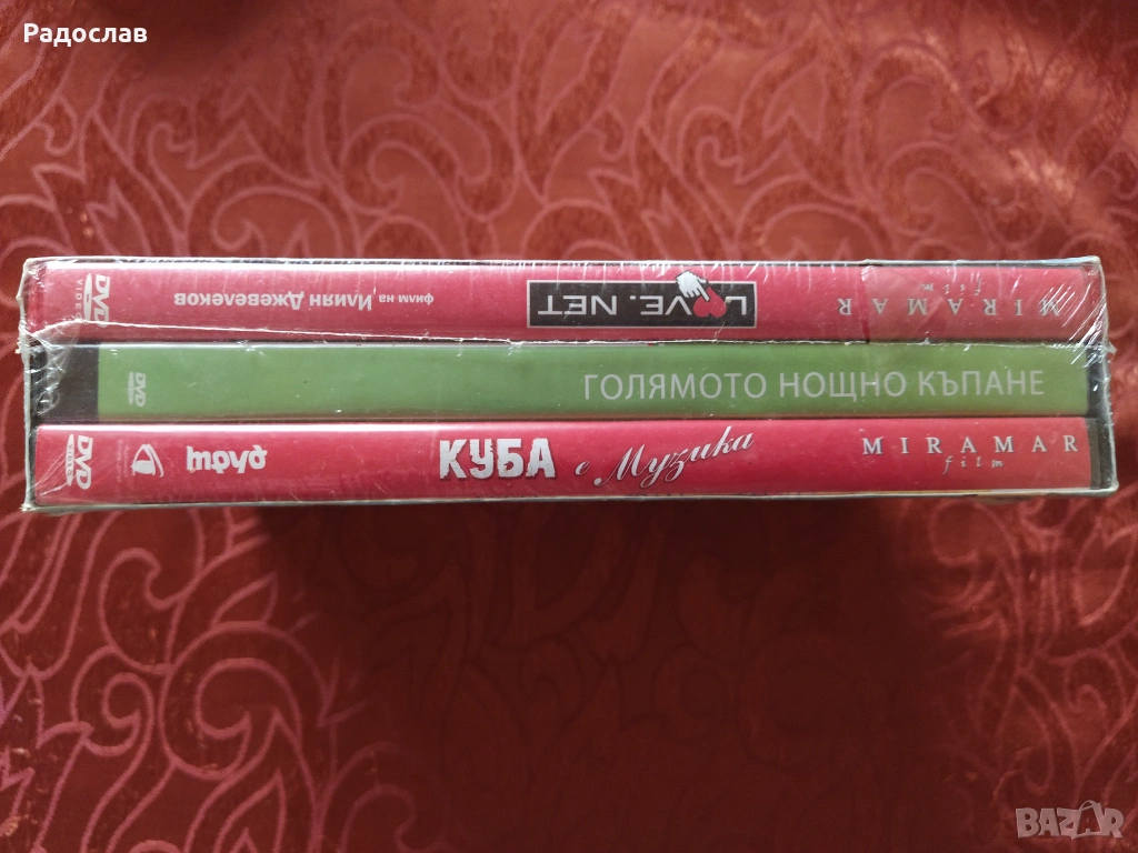 три диска с филми ,, Голямото нощно къпане " , ,, Куба " , Love . Net