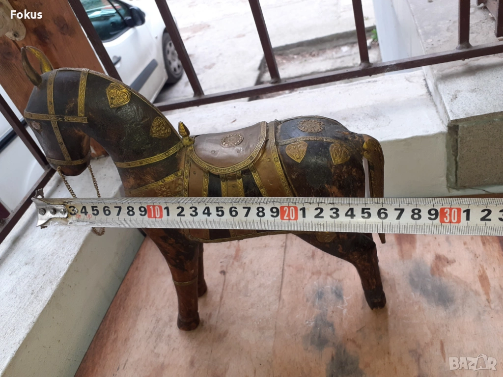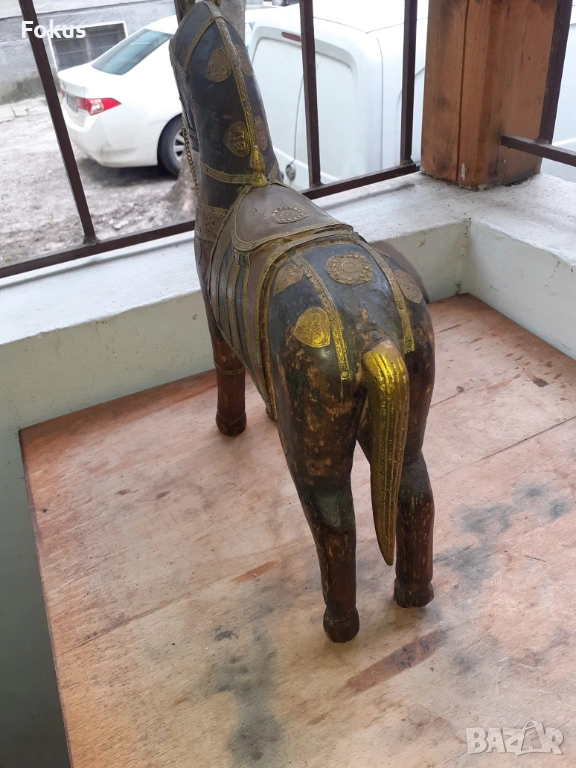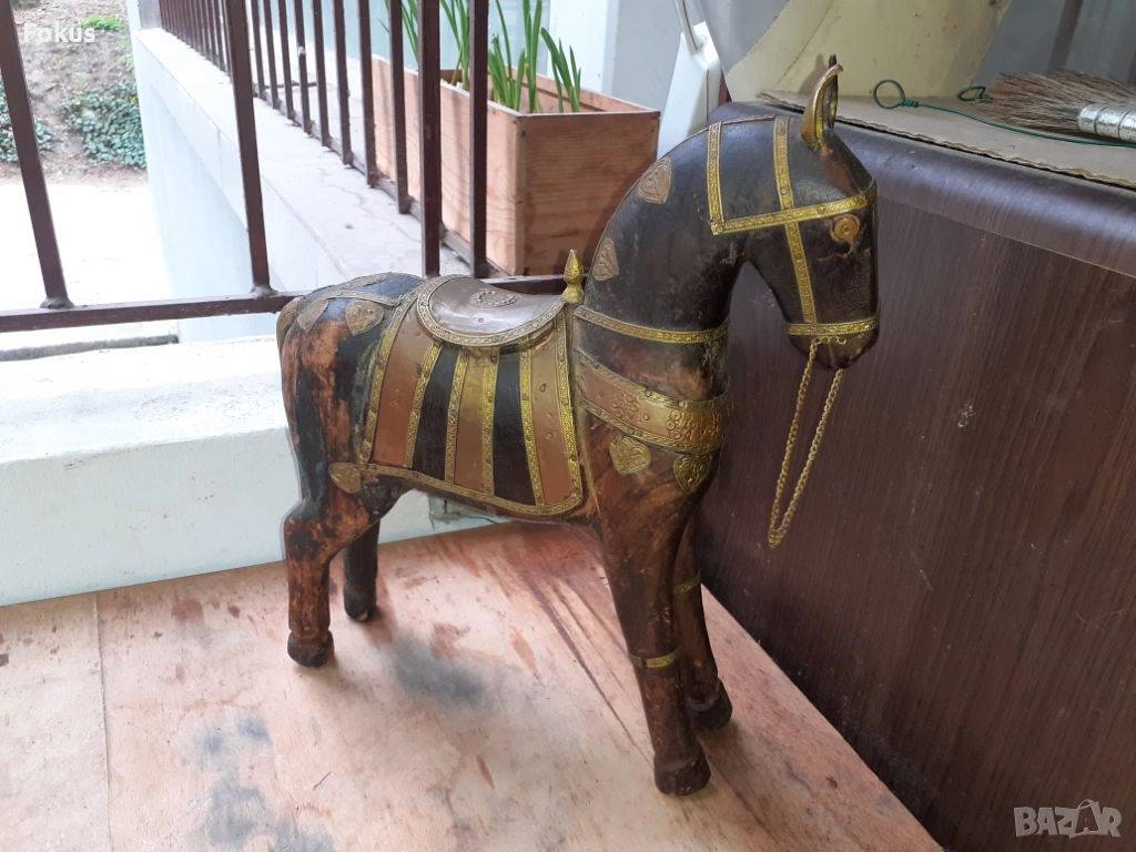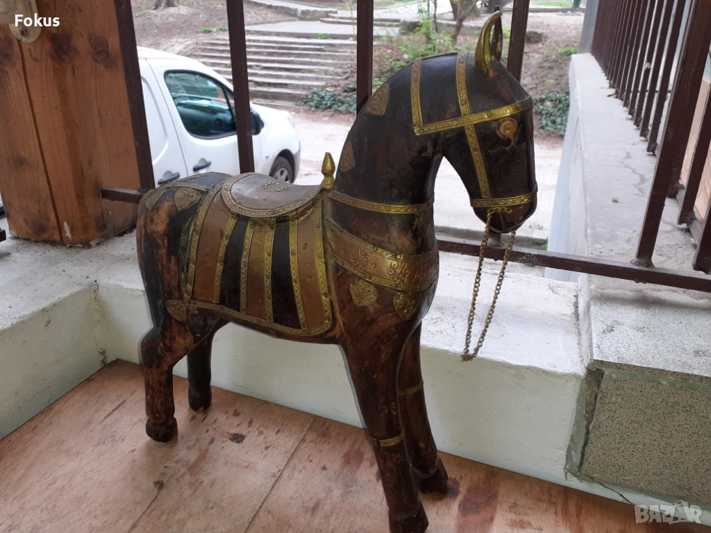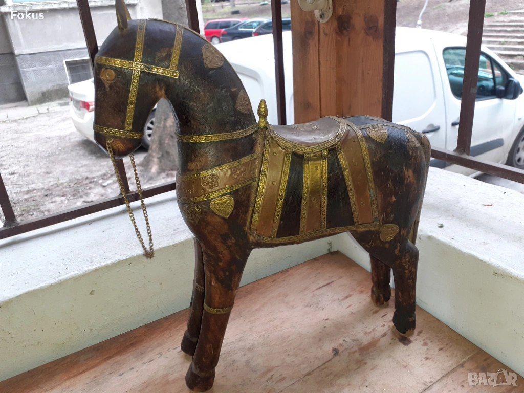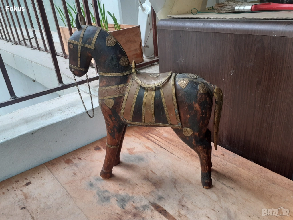 Старо антикварно дървено конче с месинг статуетка фигура кон → Обява 54220561