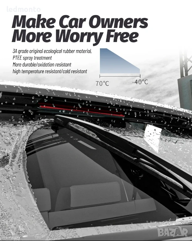 Първокласен естествен каучук – елиминира скърцането и осигурява гладко плъзгане по стъклото