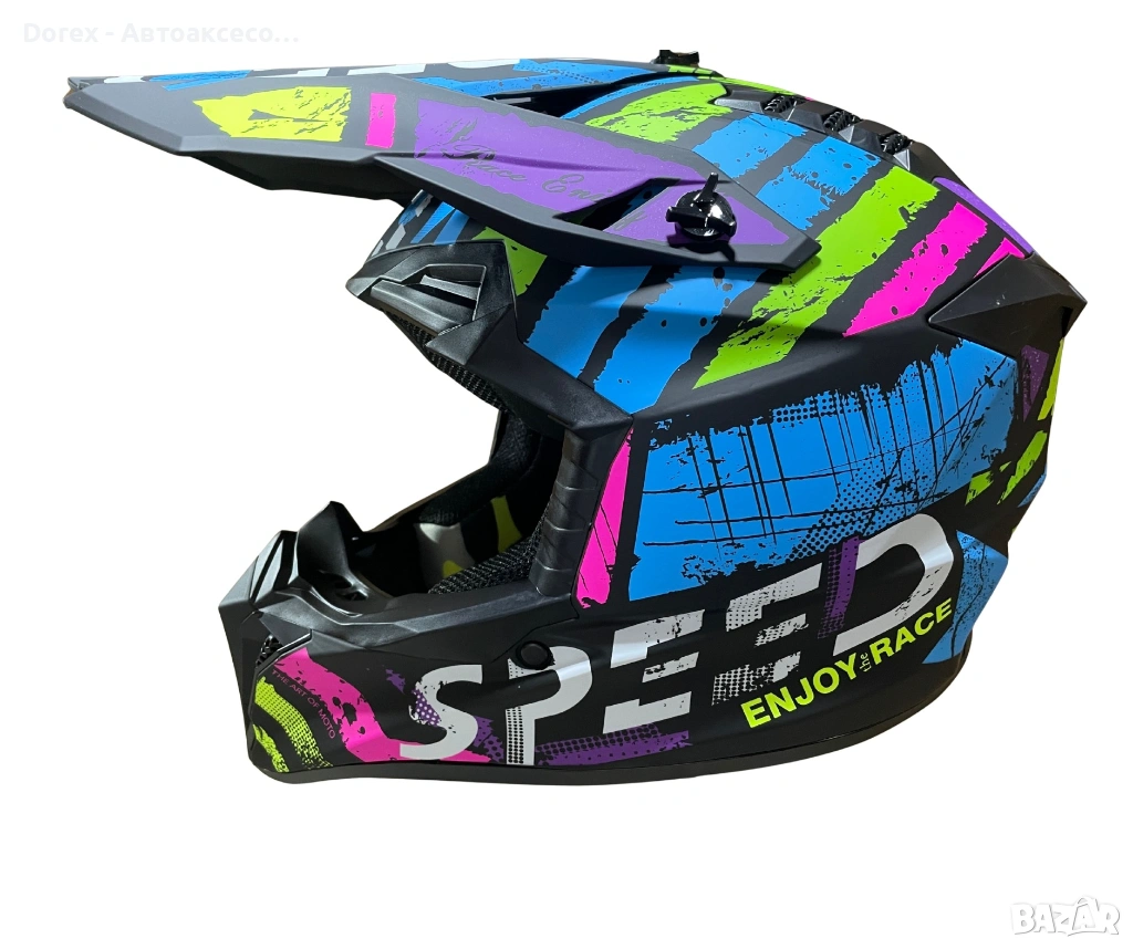 мотокрос каска, създадена за максимална защита и комфорт при каране на мотор, ендуро, ATV, велосипед и офроуд терени.