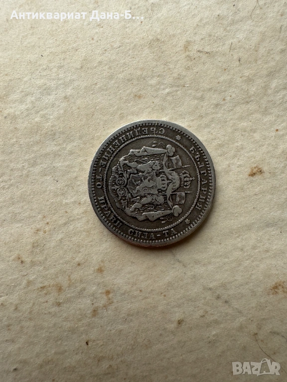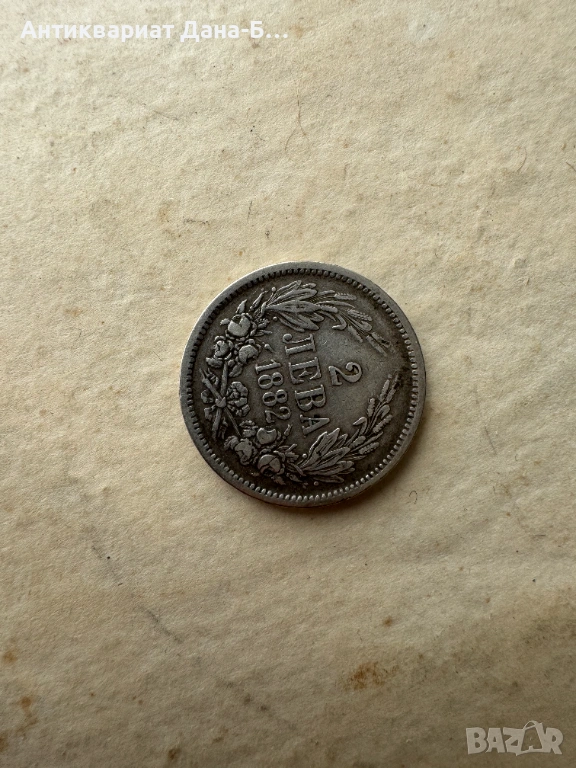 №13 Aвтентична сребърна монета с номинал 2 лева от 1882 година. Това е една от първите емисии на Третата българска държава, отсечена по време на управлението на Княз Александър I Батенберг в монетния двор на Санкт Петербург.