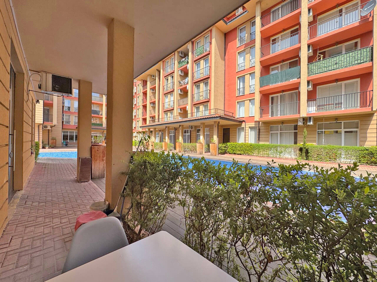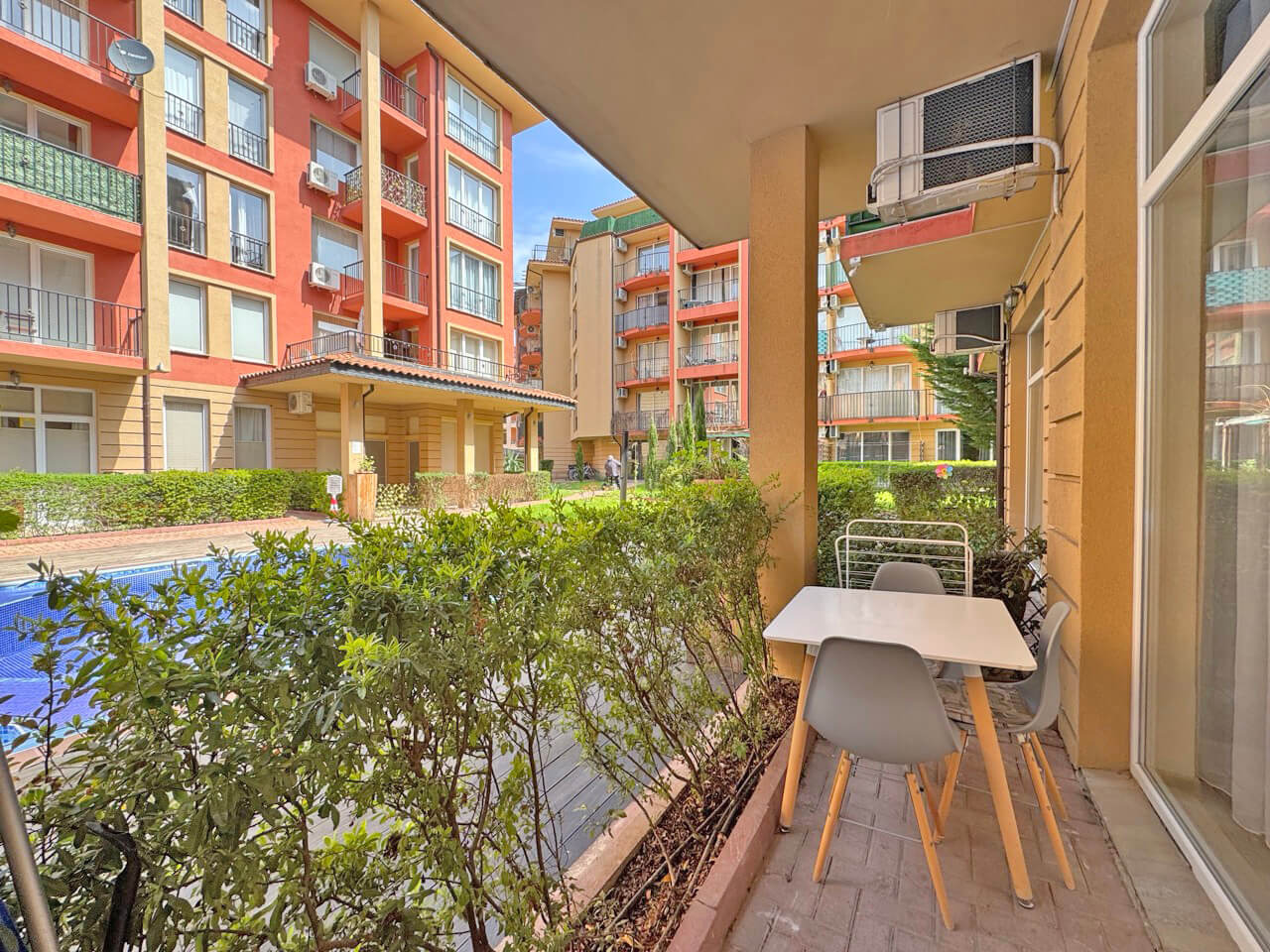 Предлагаме за продажба стилно обзаведен едностаен апартамент в района на плажа ,, Какао Бийч', на около 400 м. от плажната ивица в южната част на комплекса, в к-с 'Съни Вю Цен-трал'. Апартаментът е с квадратура 37 кв.м. и е разположен на първи партерен етаж в шест етажна сграда с асансьор. Разпределение: антре, дневна с кухненски бокс, кът за хранене и спален кът, баня с душ кабина и тоалетна, просторна веранда с гледка към басейна. Апарта-ментът се продава обзаведен и оборудван. Комплекс ' Съни Вю Сентръл' е разположен в близост до морето и е комбинация от уют, удобство и оптимален комфорт. За удобство на собствениците, комплексът предлага денонощна охрана и поддръжка, паркинг, ресторант, два басейна с детска секция, красиви градини и зелени площи, обособени детски зони и зо-ни за почивка и релакс. В близост до комплекса има супермаркет, много търговски обекти и разнообразни заведения, автобусна спирка, поликлиника. Изключително подходящ за живе-ене и отдаване под наем целогодишно. Акт 16 и битов ток.