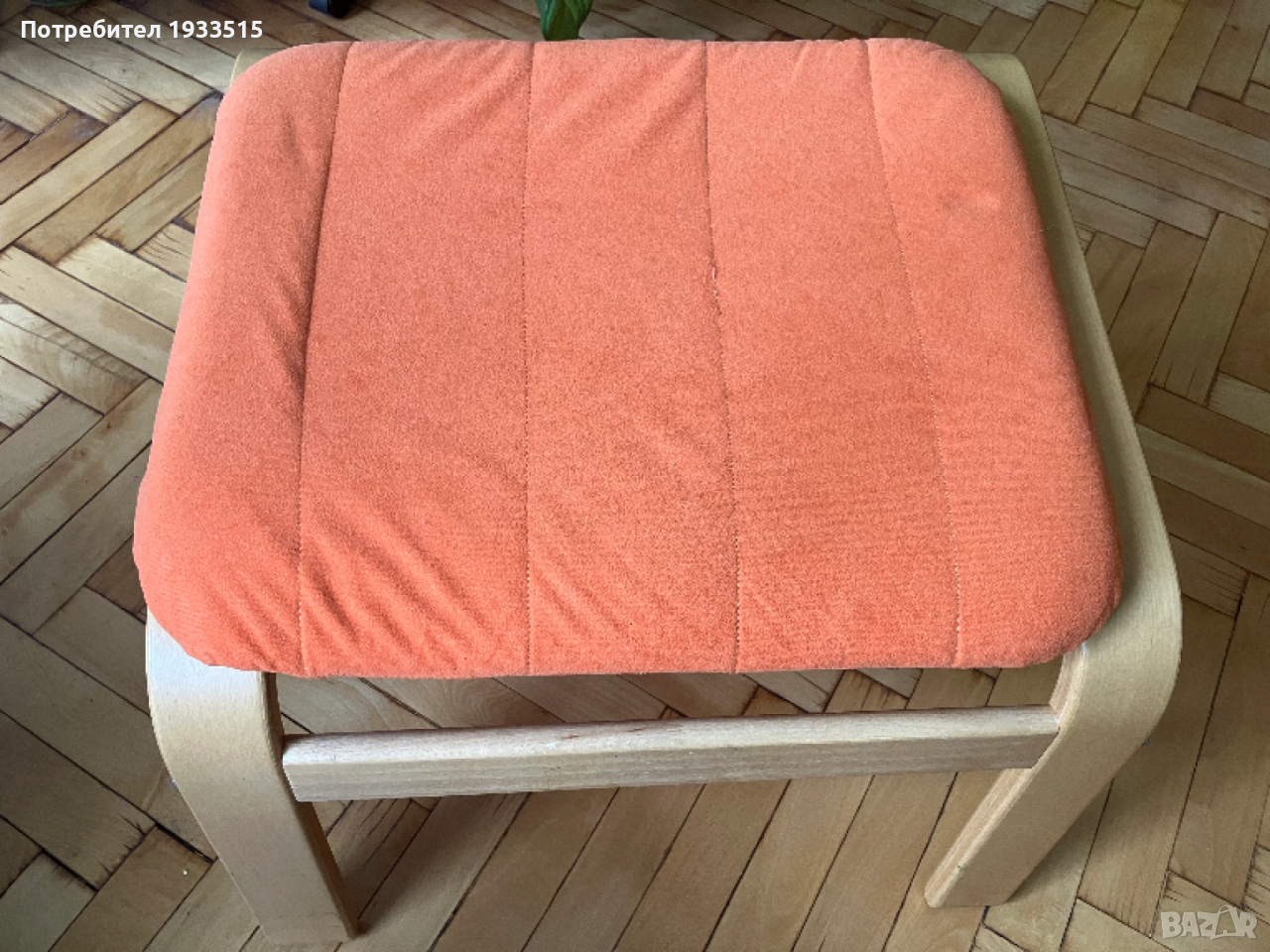 Дървен стол за четене, заедно с прилежащата му таборетка. Калъфите на меката част могат да се свалят и перат.