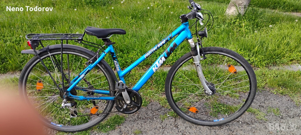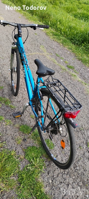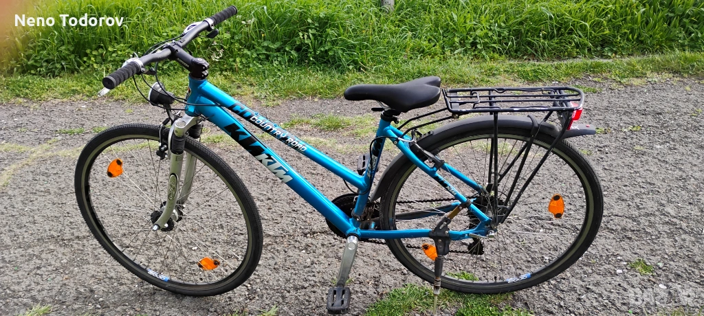 28 цола дамско колело КТМ призведен в Австрия 47 sm. височина на рамката, степенка, калници, багажник, предпазител на веригата, алум. капли, предна амортесьорна вилка, предна динамо капла, преден фар, заден стоп, 21скорости shimano,14 кг..
