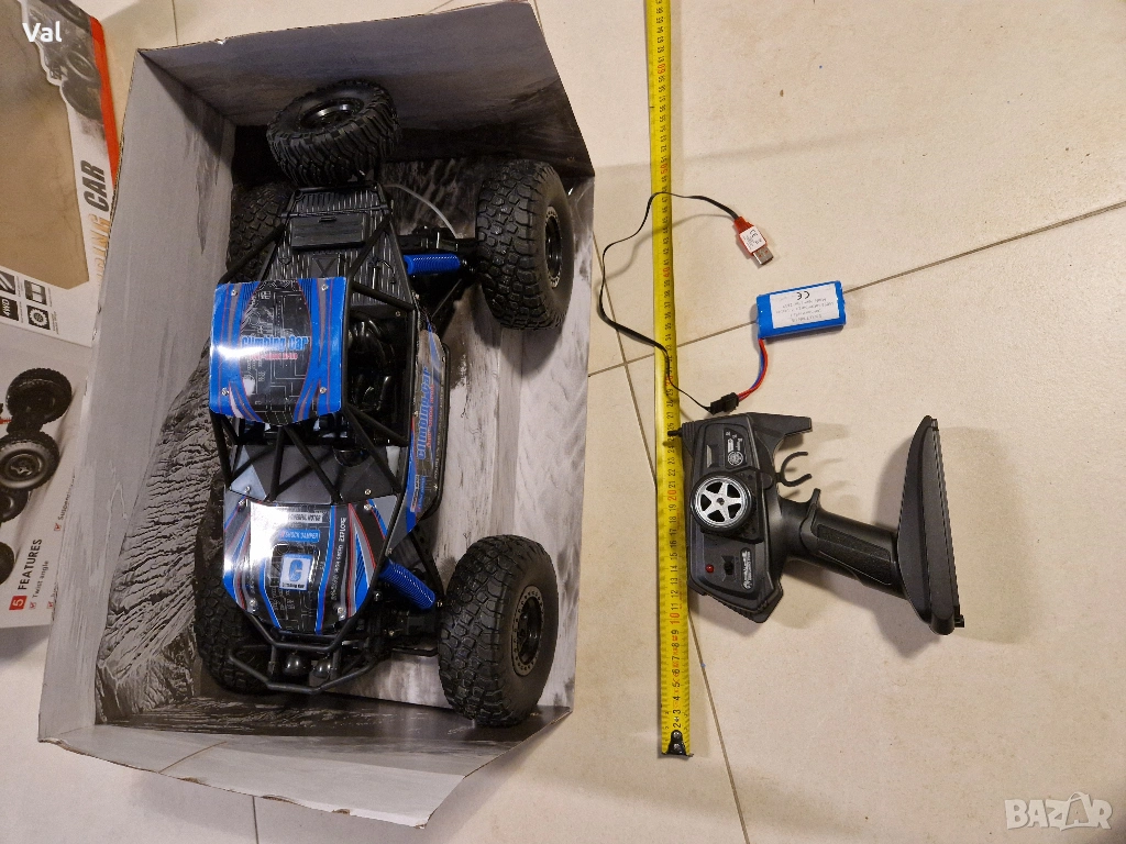 Комплекта включва - бъги, дистанционно, батерия, зарядно кабелче, опаковка