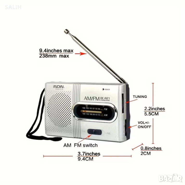 Мини Преносимо Радио INDIN BC-R21 AMFM на Батерии Джобен Транзистор