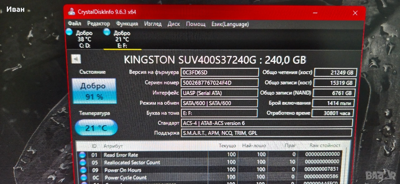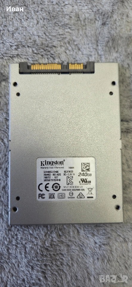 Kingstone 240GB Sata3 2.5inc SSD - подходящо за лаптоп и настолен компютър.