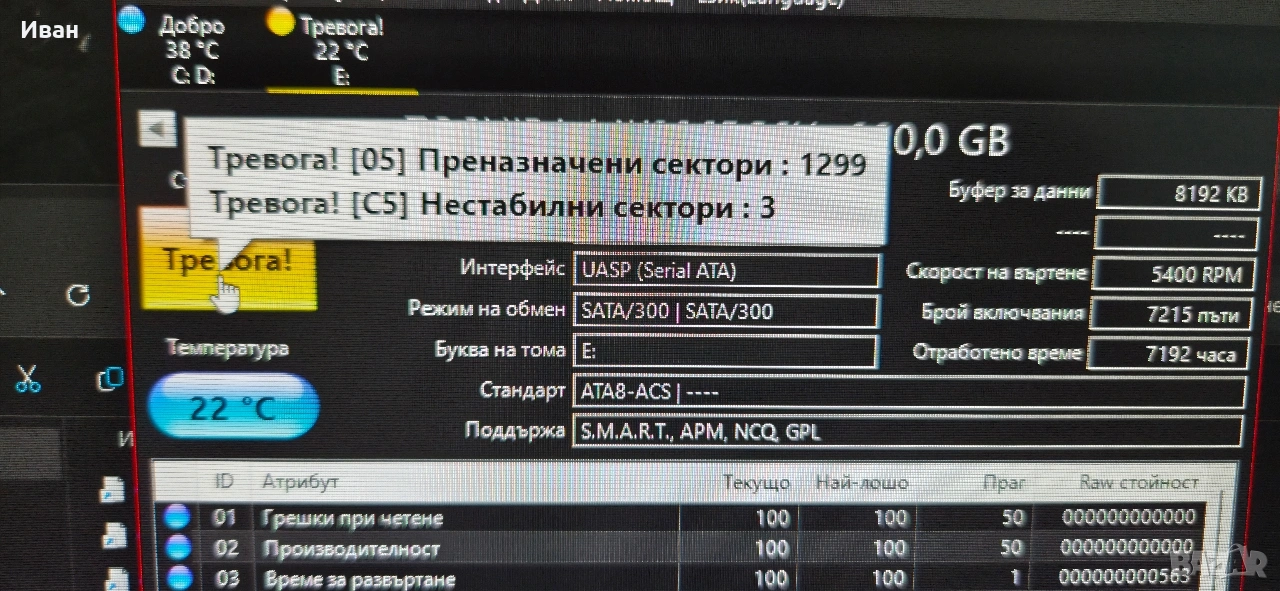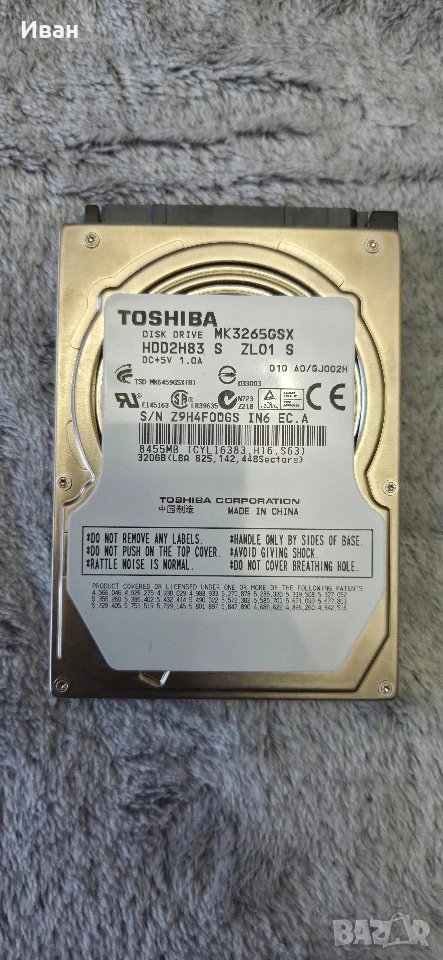 HDD 2.5инч. сваленп от лаптоп Toshiba 320GB с 3 лоши сектора. ( не пречи по никакъв начин на работата му ! )