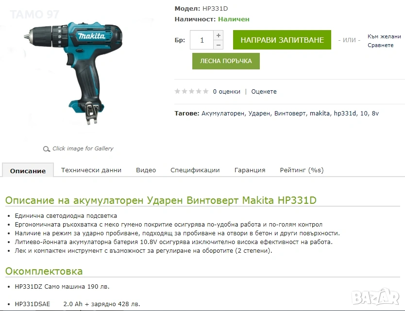 Марка и модел: Makita HP331D