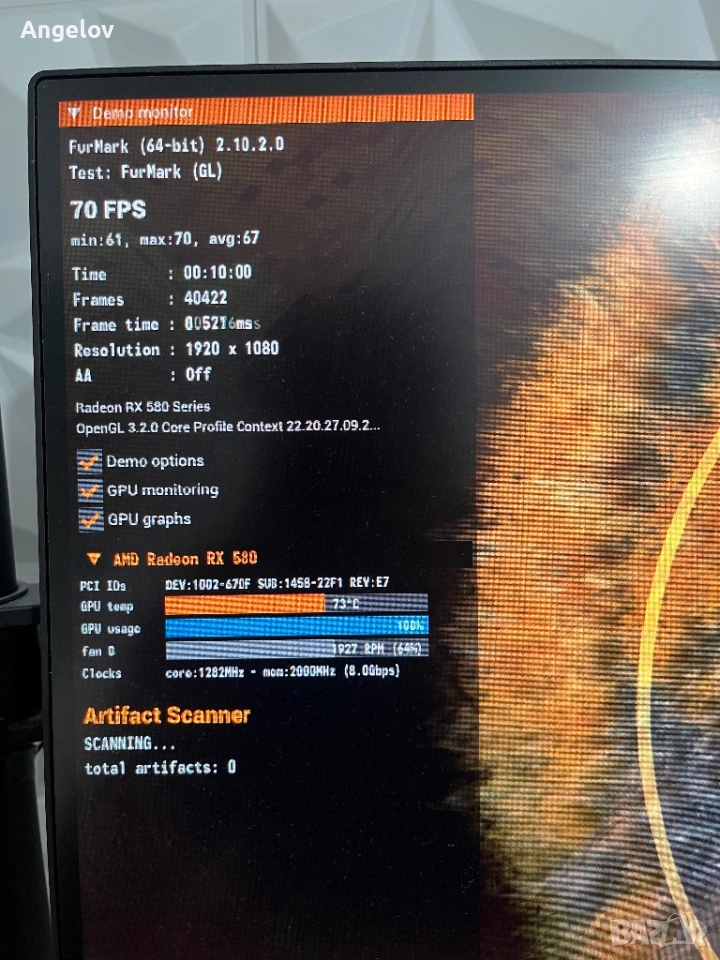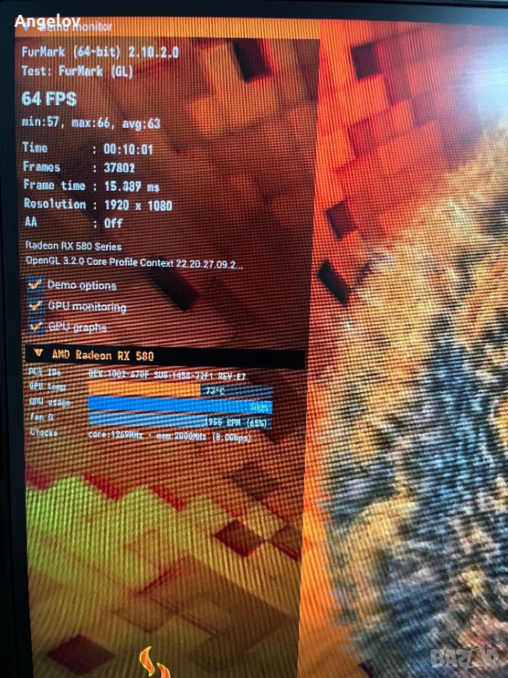 • Видеокарта: Тествана с Furmark – стабилна работа и безшумни вентилатори, картата не вдигна над 74 градуса, което е перфектно за такова тежко натоварване, тествани са и вентилаторите, като и те са в перфектно състояние.