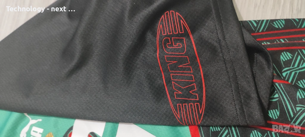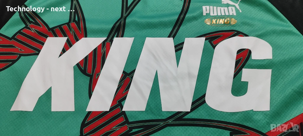 Детайли: Голям надпис "KING" на гърдите, лого на Puma и уникални геометрични шарки на гърба и отпред.