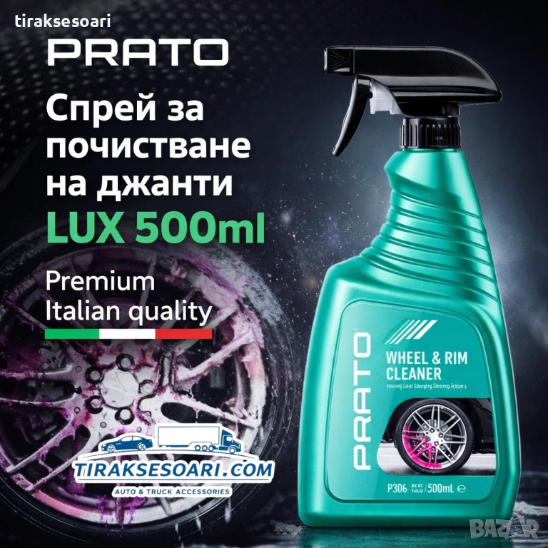 PRATO Wheel & Rim Cleaner LUX 500ml (Код: P306) е професионален спрей за почистване на джанти, създаден да осигури максимална ефективност и перфектен външен вид. Специалната формула бързо премахва упорит спирачен прах, кал, масла и пътни замърсявания, като възстановява оригиналния блясък на джантите.
