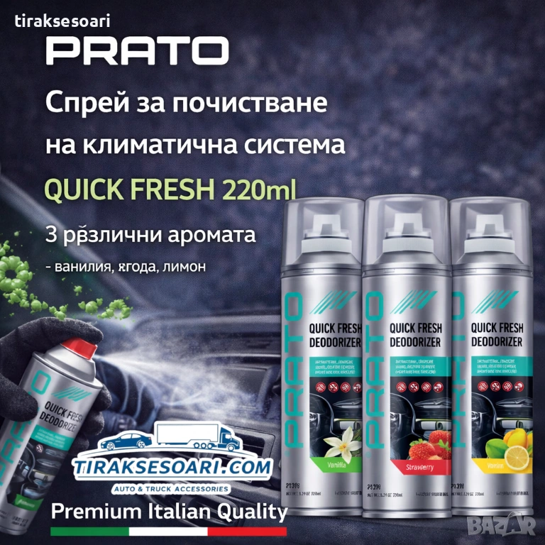 препарат за климатик, quick fresh, PRATO P139, почистване климатична система, air conditioner cleaner, освежител за кола, премахване на миризми, авто химия