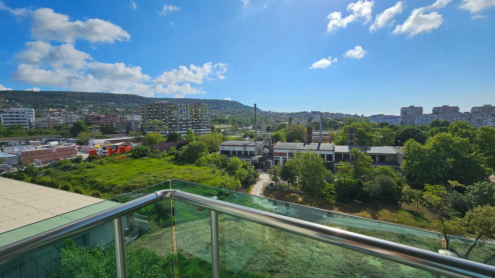 тераса с изглед към зелена площ, а не към шумен булевард