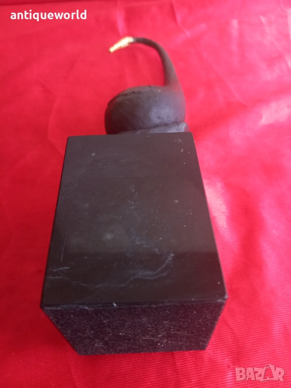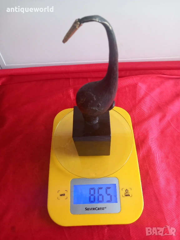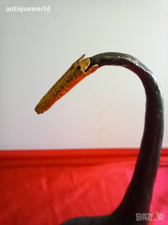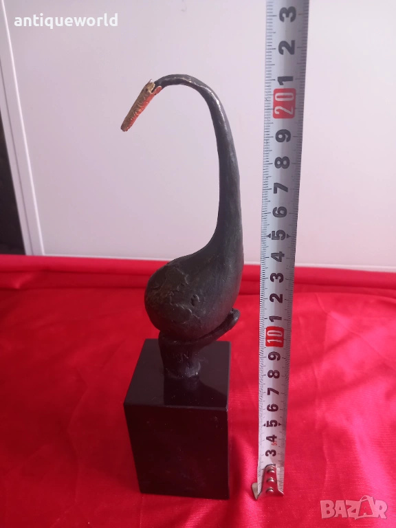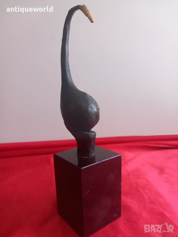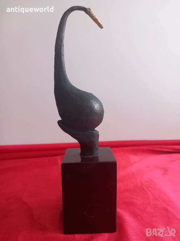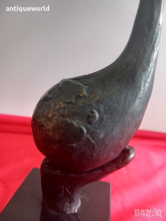 Много Красива Авторска Масивна Бронзова Пластика, Статуетка "Птица" . Бронзова върху мраморен постамен клюн с позлата.