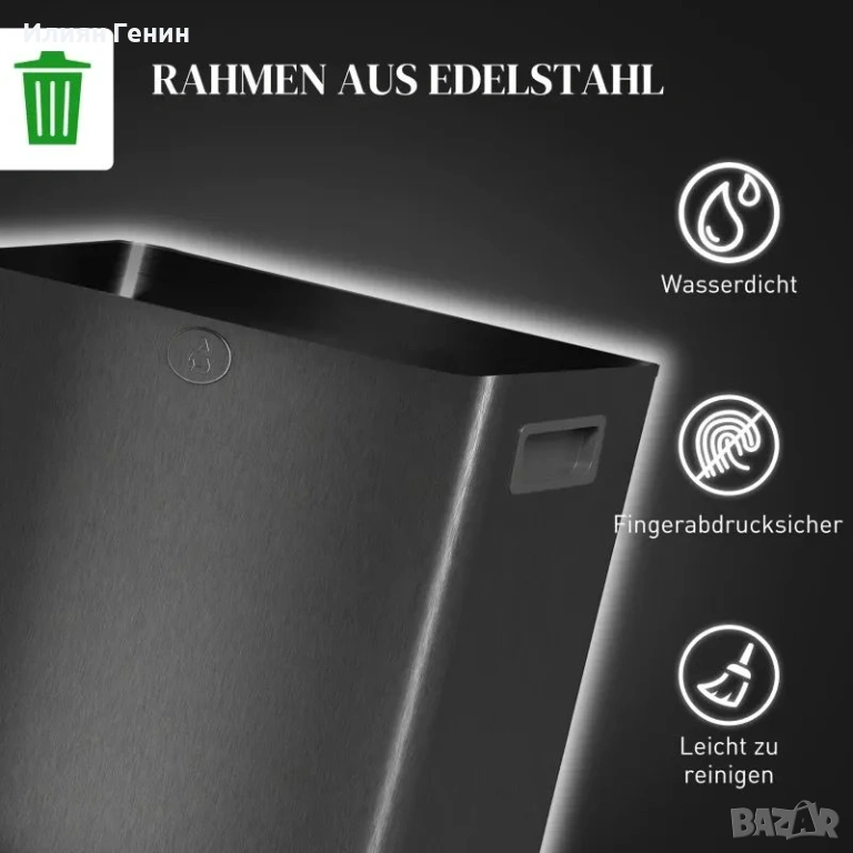 ✔ Конструкцията от неръждаема стомана на кошчето с педал прави двойния контейнер здрав. Елегантната, полирана повърхност е устойчива на пръстови отпечатъци.