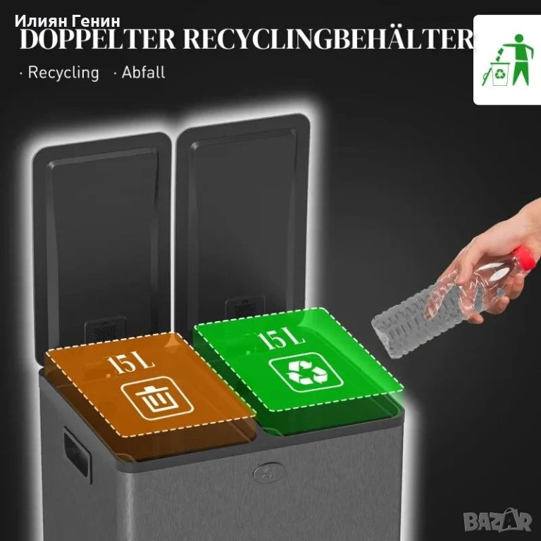 ✔ 2 x 15 литра капацитет: Двойният контейнер предлага много място и позволява гъвкаво разделяне на съдържанието.
