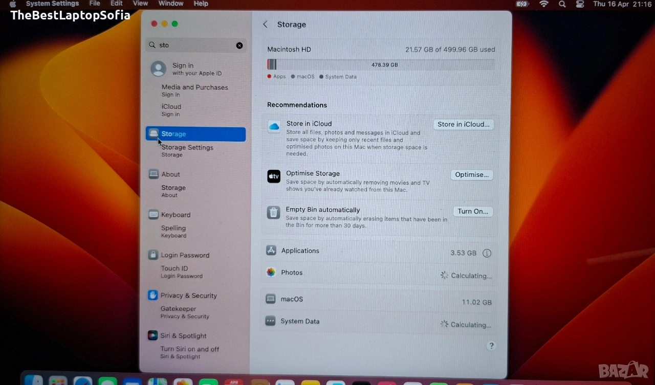 Съхранение (SSD): 512GB PCIe-базирано флаш съхранение.