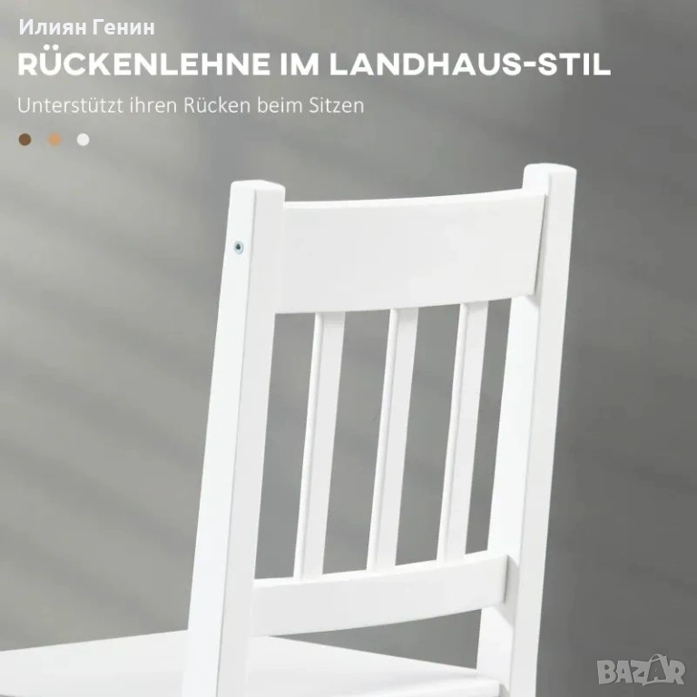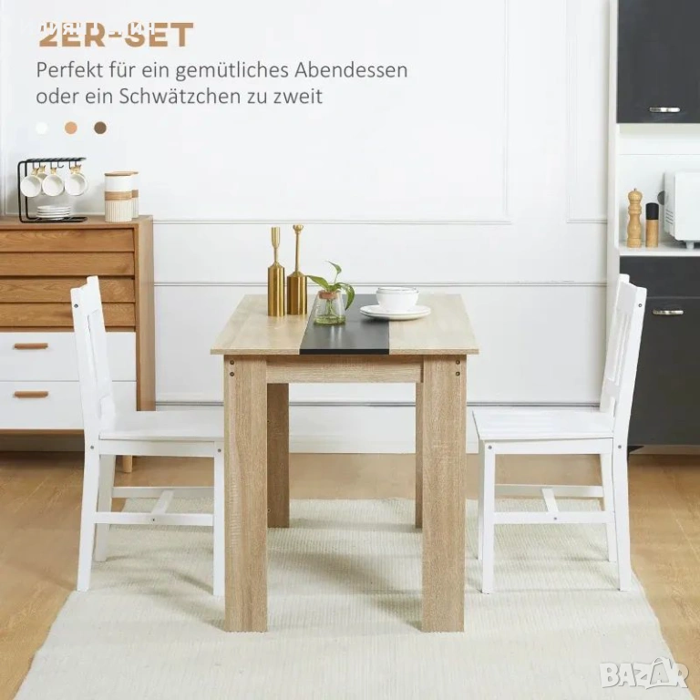 Комплект от 2 трапезни стола HOMCOM, Кухненски столове, Масивно дърво, 41 см x 46,5 см x 85,5 см, Бял - 90.00 € .