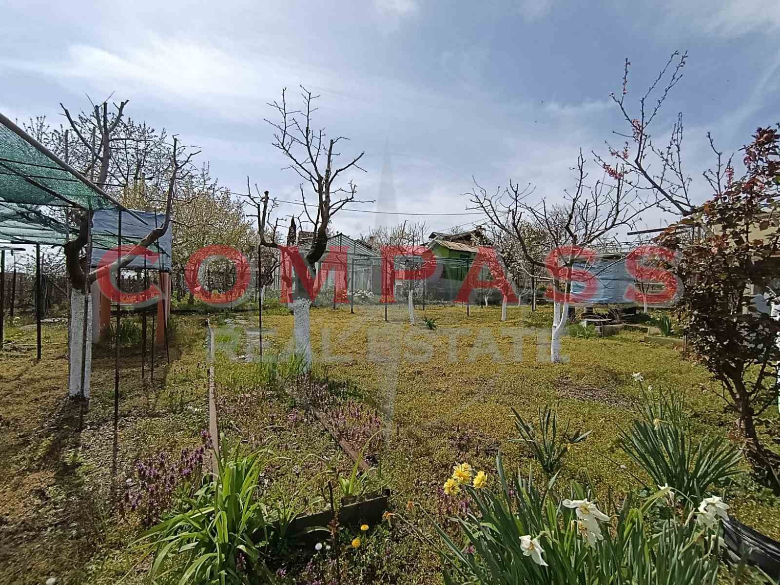 Имотът е равен и ограден, с изградена овощна градина. В парцела има законна постройка, чешма, беседка и система за капково напояване.