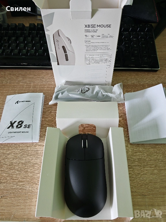 Безжична лека геймърска мишка ATTACK SHARK X8 SE | програмируема USB/BT/2.4GHz | 1k pooling rate
