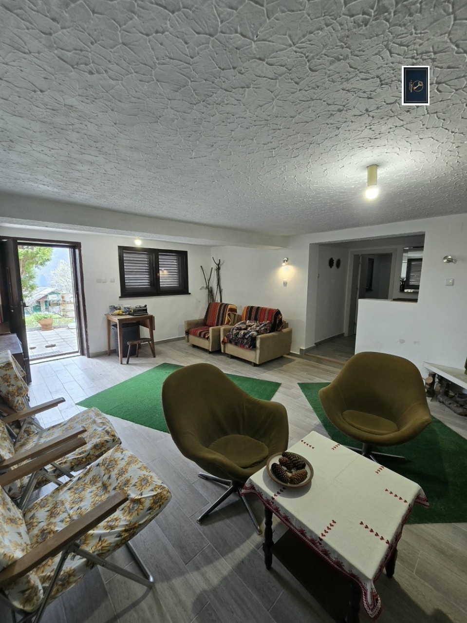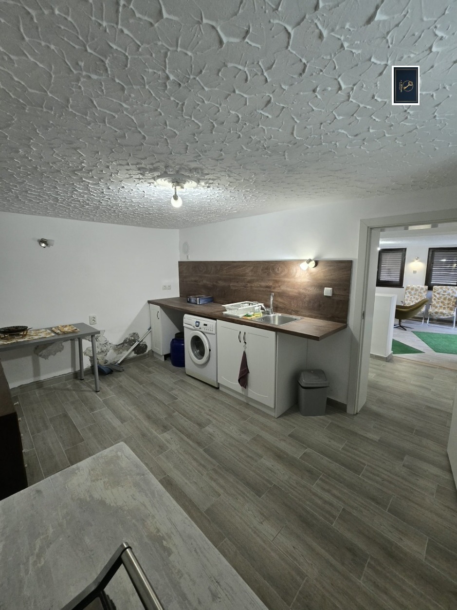 Сутерен: Просторни хол с уютна камина, отделна кухня и тоалетна. Идеално ниво за прохлада през лятото и топлина през зимата.