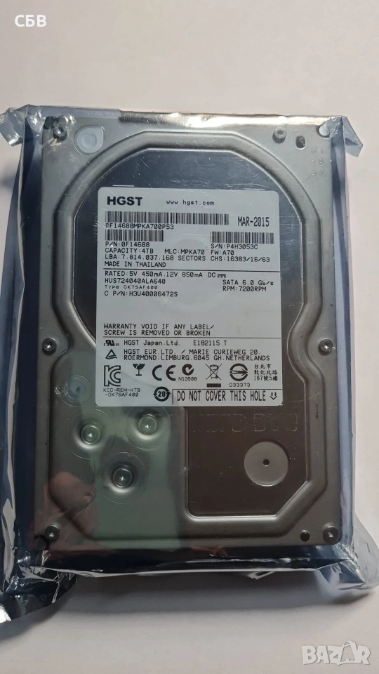 Твърд Диск HGST Ultrastar 7K4000 (модел: HUS724040ALA640)