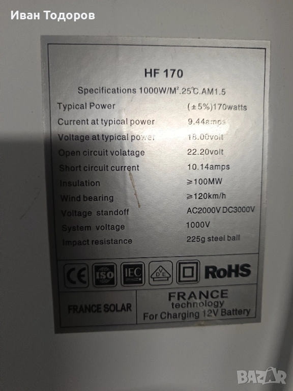 Соларен панел France Solar HF 170 (170W):