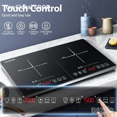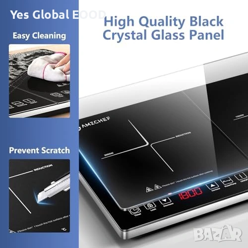 Двоен индукционен котлон AMZCHEF 3500W таймер