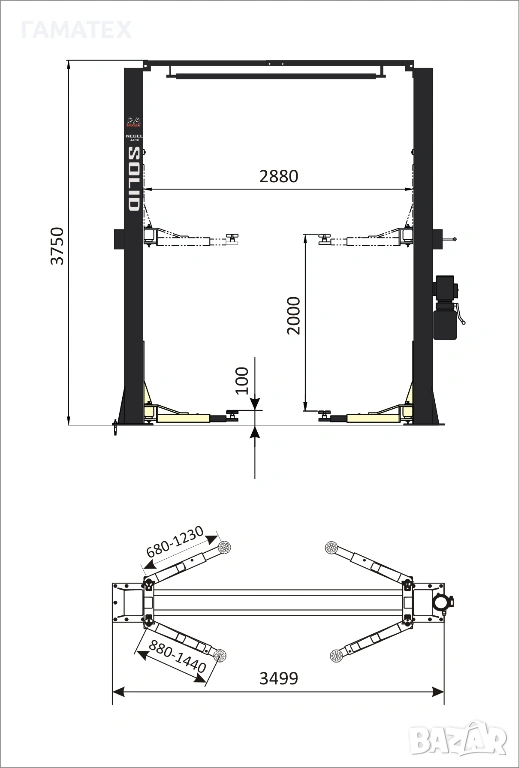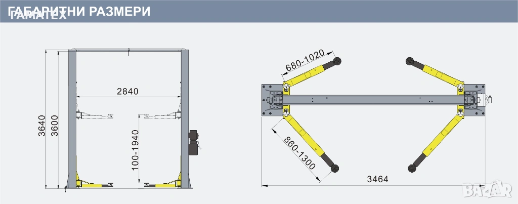 Промоция! 4 тона двуколонен подемник Negel Jack с горна синхрониция L2140+ анкери + 4*85 мм адаптери