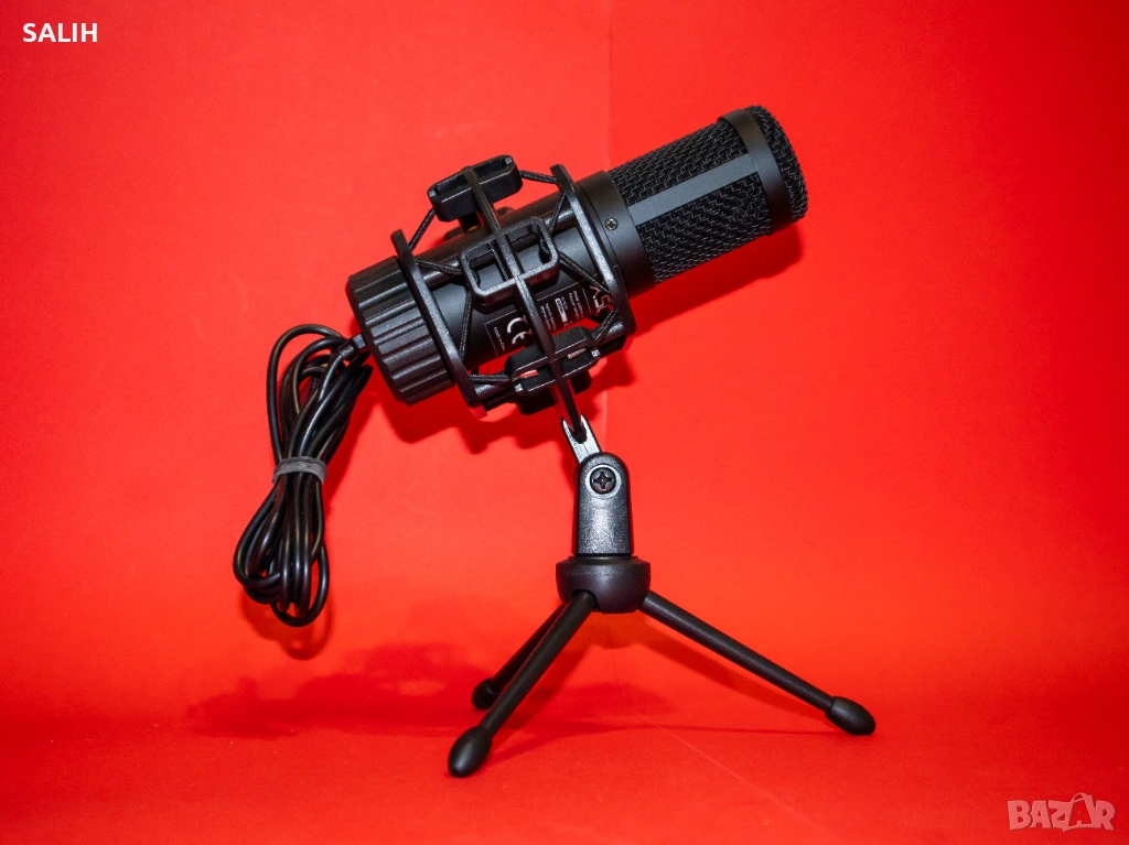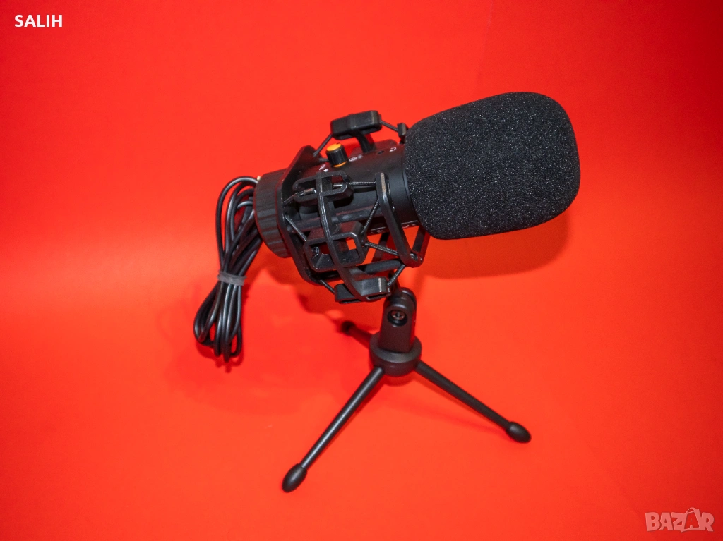 Комплектът включва трипод, wire shock mount, deadcat и USB кабел. Готов за употреба веднага след свързване към компютър.