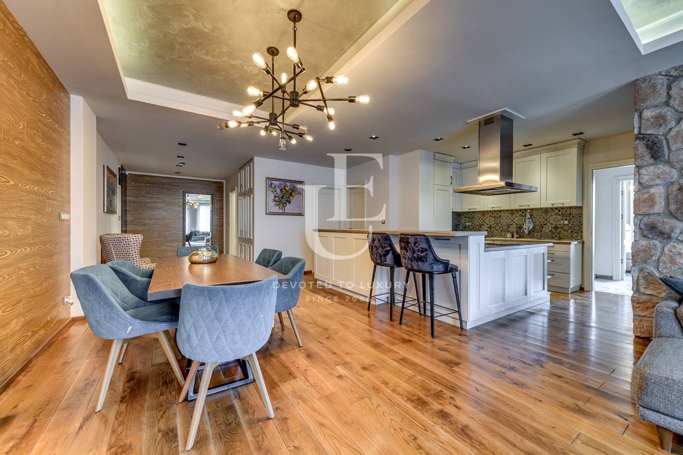 Unique Estates има удоволствието да ви представи разкошен апартамент с три спални, от който се откриват невероятни гледки към Витоша. Имотът се отличава с просторните си и светли помещения, разположен в бутикова сграда с денонощна охрана, ресторант и фитнес.