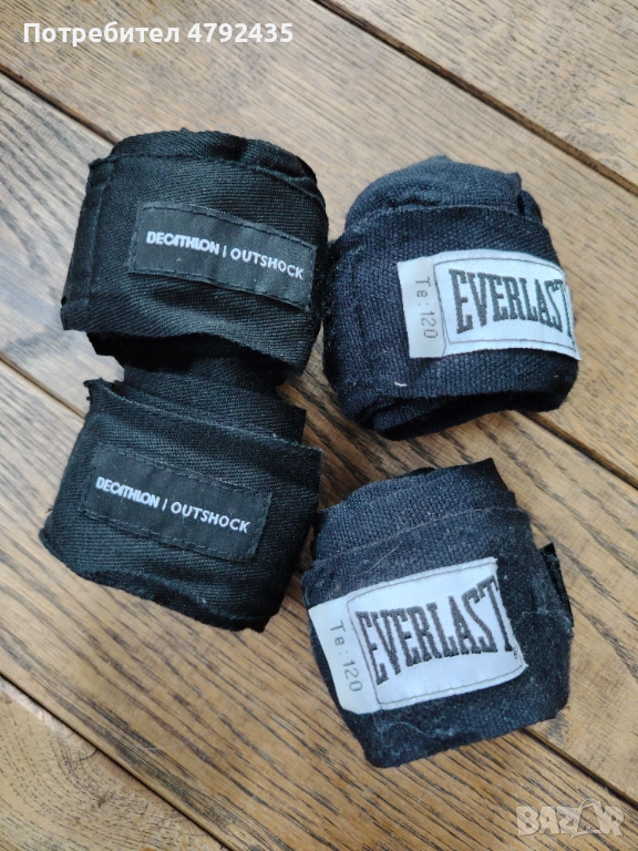 Ръкавиците са от естествена кожа, използвани точно 4 пъти,в перфектно състояние. Обявената цвна е за ръкавиците. Към тях има и бинтове - Decathlon 250 см и Everlast 275 см на цена по 2.50 евро за чифт