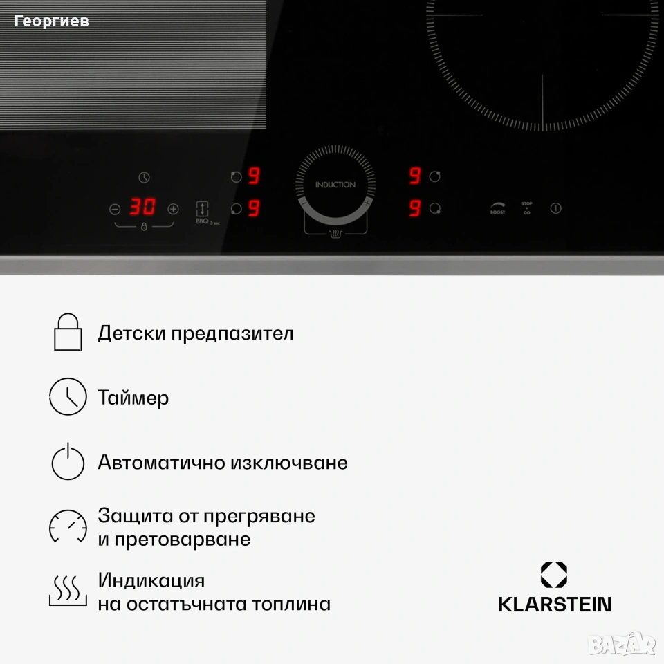 За да поддържа нещата безпроблемно по време на готвене, вградената готварска печка Klarstein Delicatessa 60 Hybrid Prime разполага с широк спектър от предпазители: Защитата от прегряване с автоматично изключване се активира, ако плочата е твърде гореща. Индикаторът за остатъчна топлина на принципа EcoThermal Control не само ви информира дали изключените повърхности за готвене все още са горещи. Освен това позволява готвене с остатъчна топлина, за да се спести енергия. Функцията ThermalRecall запомня зададената температура и се използва, ако процесът на готвене е прекъснат за кратко време и трябва да бъде възобновлен по-късно. В допълнение, заключването за деца може да бъде активирано за предотвратяване на случайни промени в настройките за готвене.