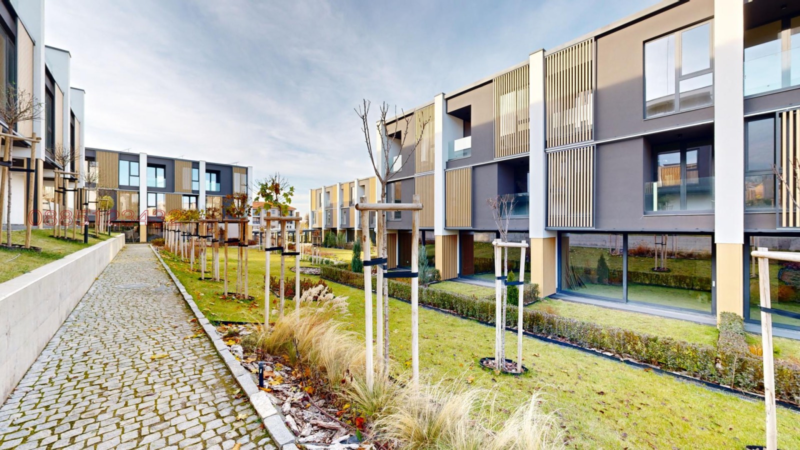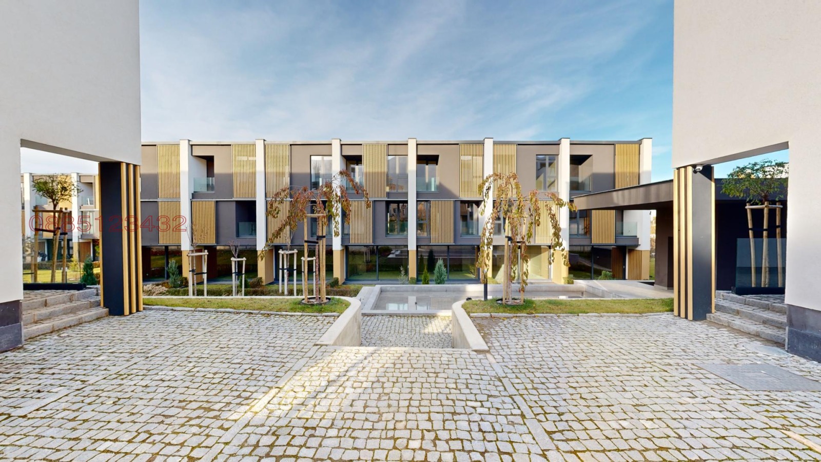 Комплексът е изграден от 34 редови къщи, групирани в 6 сгради, подземен паркинг със 78 паркоместа и богато озеленено дворно пространство.