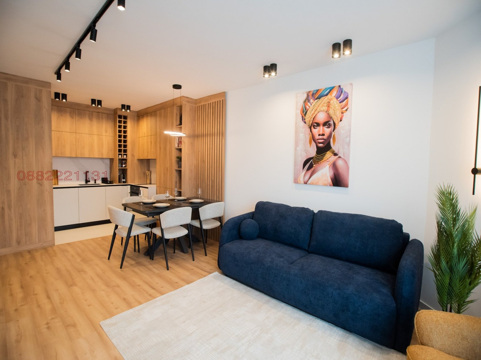 Апартаментът е луксозно обзаведен по дизайнерски проект и оборудван с висок клас електроуреди BOSCH и AEG.