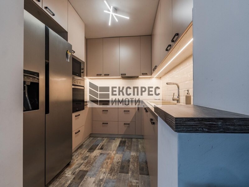- Оборудвана кухня (хладилник с ледогенератор и фризер, фурна, микровълнова, керамичен плот, кана за гореща вода, тостер, съдомиялна, кафеавтомат, диспенсър за вода, посуда и прибори);