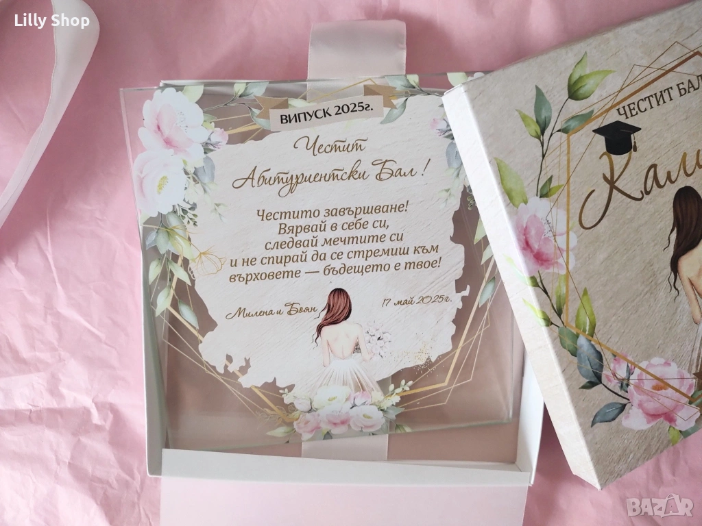 ЛУКСОЗНА СТЪКЛЕНА КАРТИЧКА ЗА АБИТУРИЕНТСКИ БАЛ | НЕЗАБРАВИМ СПОМЕН