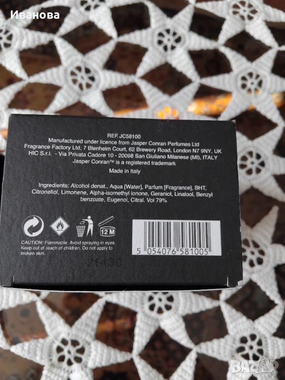Произведен в Италия.