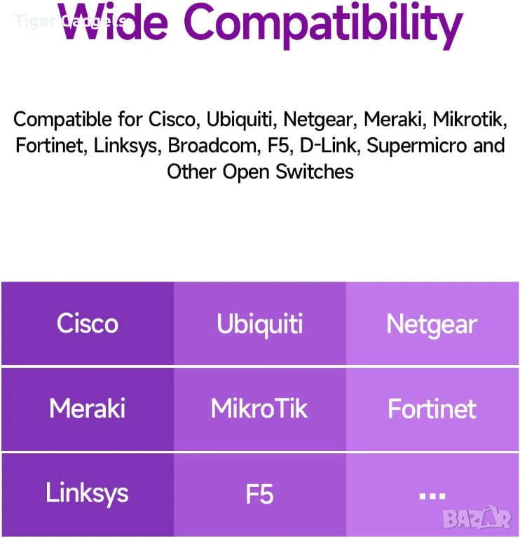 Моделът е MSA съвместим (Multi-Source Agreement) и работи с широка гама брандове като Cisco, Ubiquiti, MikroTik, Meraki, Netgear и D-Link, като предлага plug & play инсталация без допълнителна конфигурация .