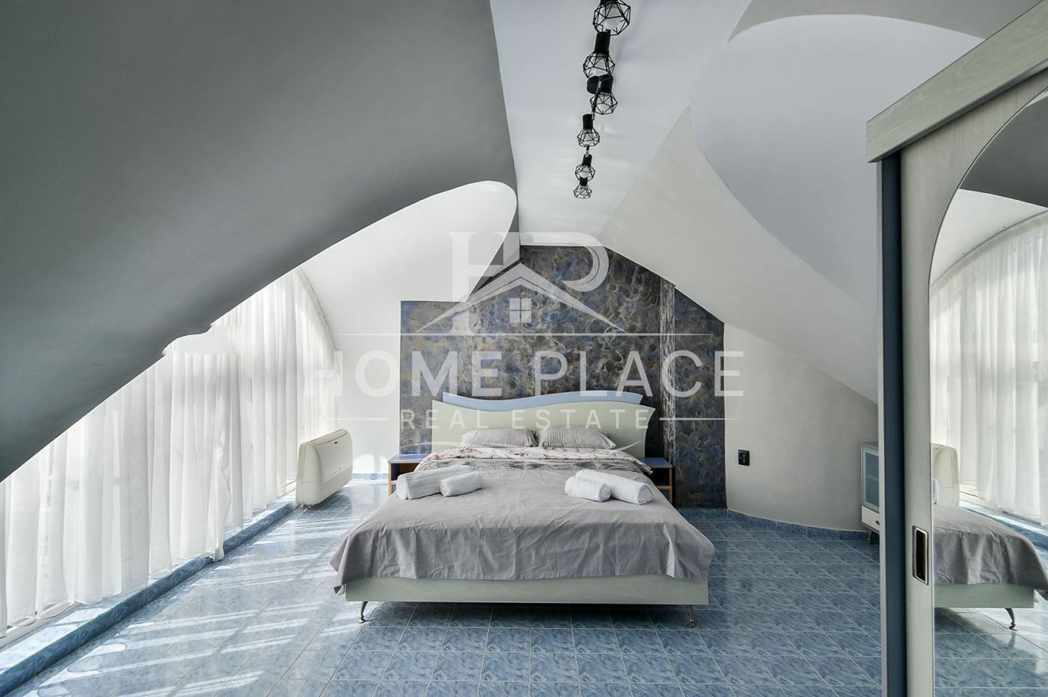 Разположен е на 4-ти етаж в сграда, цялото разположение е на 3 етажа и е с площ 180 кв.м., разпределението на имота е както следва - всекидневна с кухненски бокс, четири спални, две санитарни помещения, всяка стая има излаз към тераса.