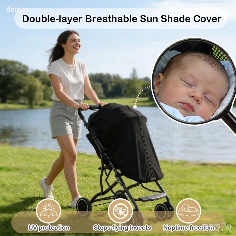 Сенник за количка и бебешка количка, блокира UV лъчите UPF50+