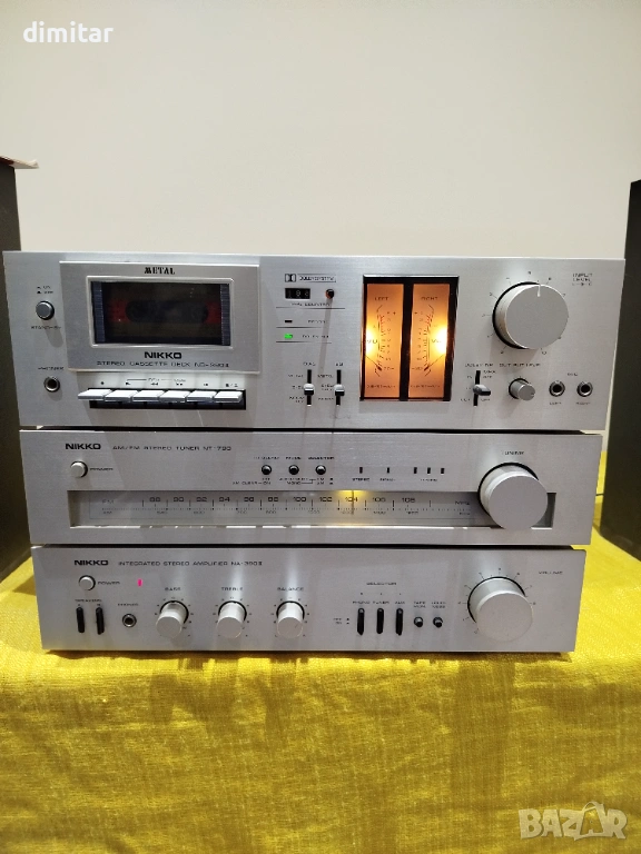 Система Nikko 390 - JAPAN е класическа винтидж Hi-Fi система от началото на 80-те години на миналия век - JAPAN ., известна със сребърната си естетика и солидното японско качество на изработка. Този специфичен „стек“ включва интегриран усилвател, AM/FM тунер и касетофон.